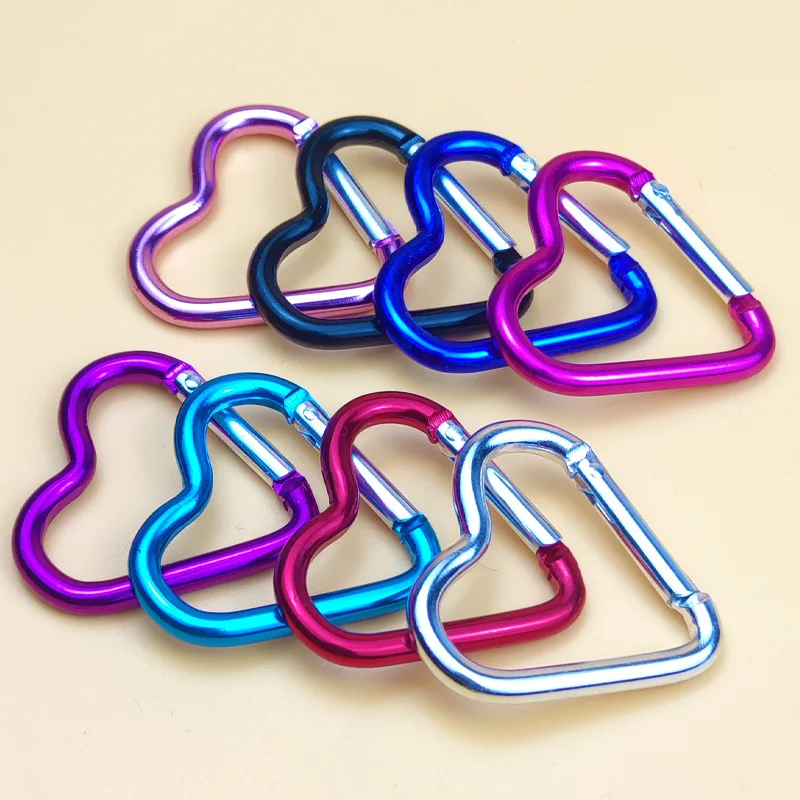 1 Pcs Heart-shaped Aluminum Carabiner Key Chain Clip Outdoor Keyring Hook Water Bottle Hanging Buckle Travel Kit Accessories